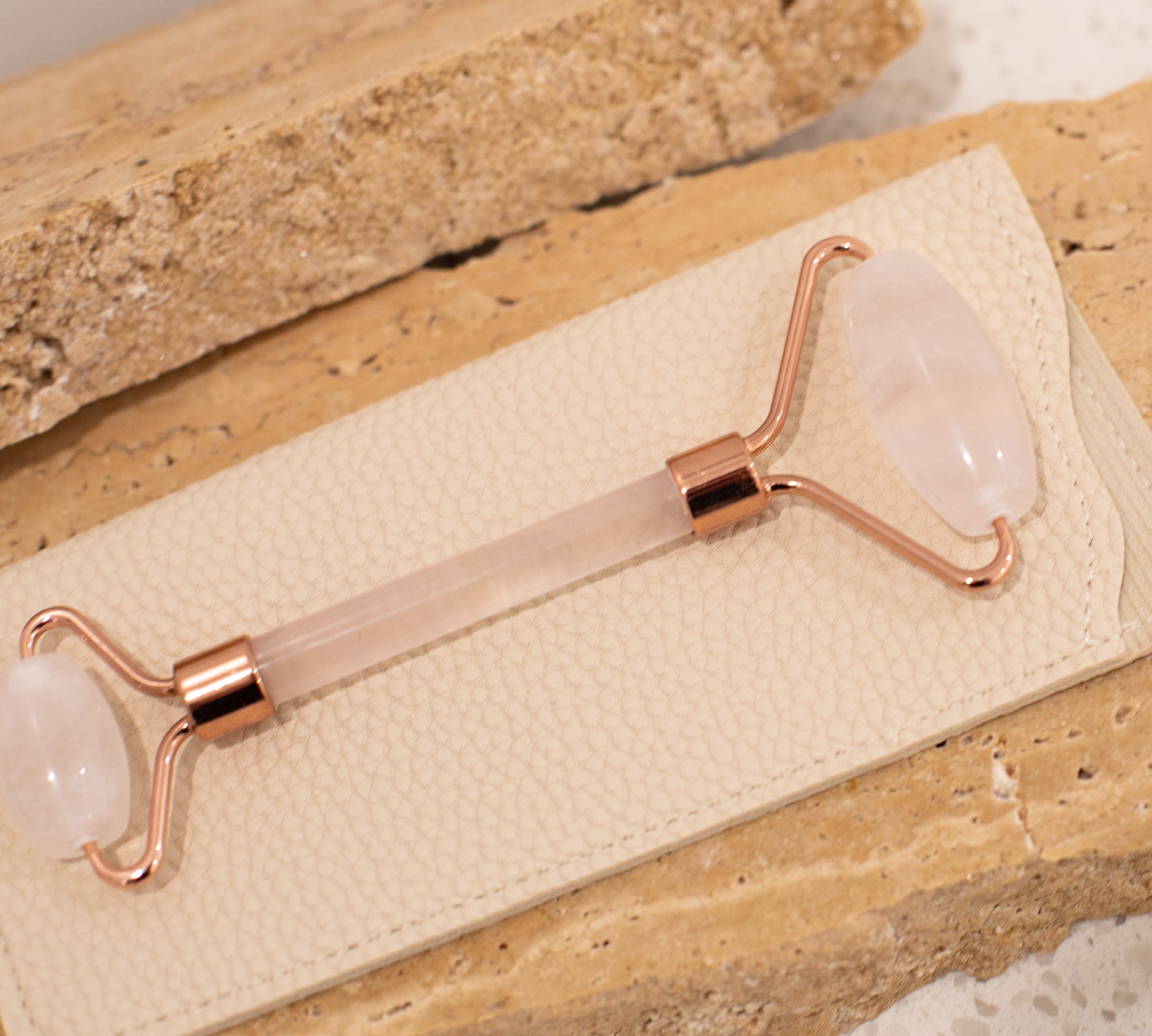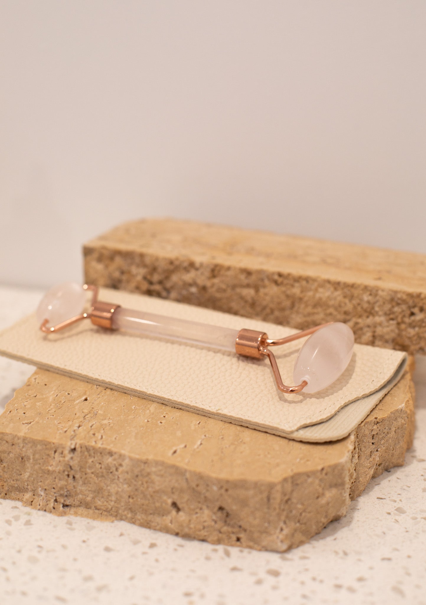 Elevate your skincare routine with our luxurious Rose Quartz Facial Roller, crafted from hand-carved rose quartz, a crystal renowned for its calming and healing properties. This versatile tool enhances your daily regimen by stimulating micro-circulation, supporting lymphatic drainage, and promoting deeper product penetration.